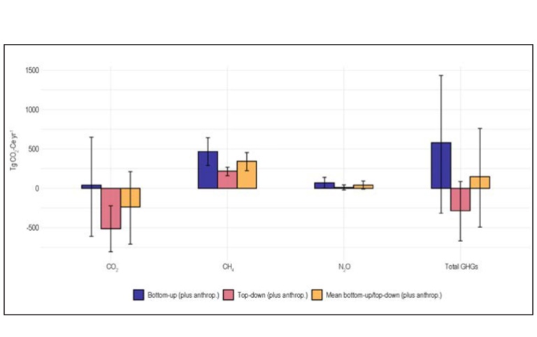 Combining the different methods, the study concludes that the region is a net sink of carbon dioxide; mainly located in boreal forests and wetlands. However, carbon dioxide is emitted from inland waters and fires affecting both forest and tundra, giving a near neutral full carbon dioxide budget. Lakes and wetlands are strong sources of methane, which contributes to significantly warming the climate, especially over shorter timescales. Nitrous oxide is emitted at low rates across the region, with a relatively limited impact on climate.
