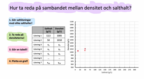 | 13.50 | Filmer om laborationen "Saltvattens densitet" och en uppgift i Excel | Individuellt |