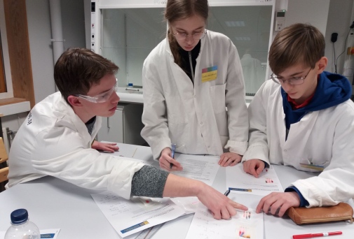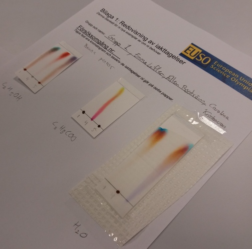 Varje finalprov är 100 minuter i varje ämne, inklusive kortare teoretiska delar. Kemiprovet handlade i år om att med papperskromatografi och olika elueringsvätskor undersöka egenskaperna av färgämnena i några olika färgpennor så noggrant som möjligt. Elevernas samarbetsförmåga och naturvetenskapliga arbetssätt var i fokus.