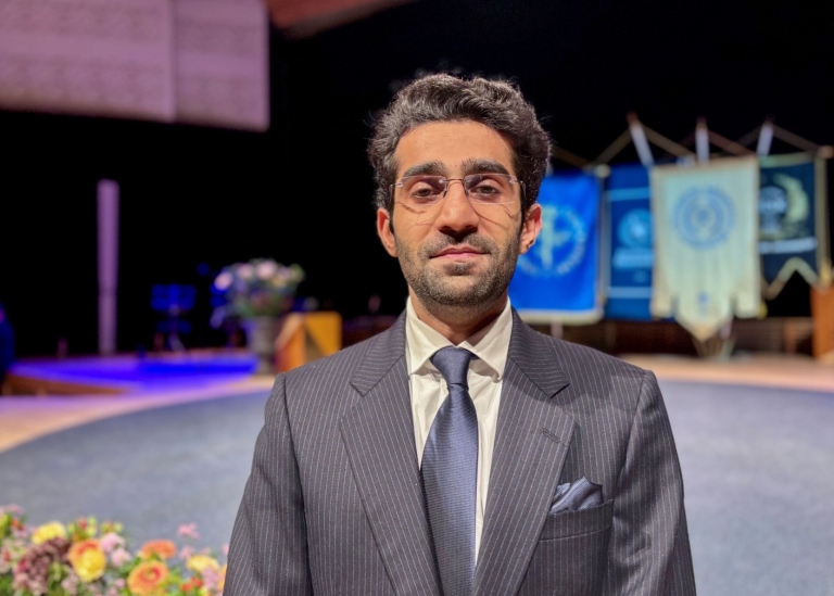 – Den här ceremonin känns som avslutningen på ett kapitel i mitt liv och början på ett nytt, säger Taimoor Raza Sultan, som har läst magisterprogrammet i internationell kommersiell skiljedomsrätt. Jag känner mig tacksam, stolt och lite sentimental. När jag står här tänker jag på min pappa, som var den som först introducerade mig för juridiken. Han var domare i vårt hemland.
