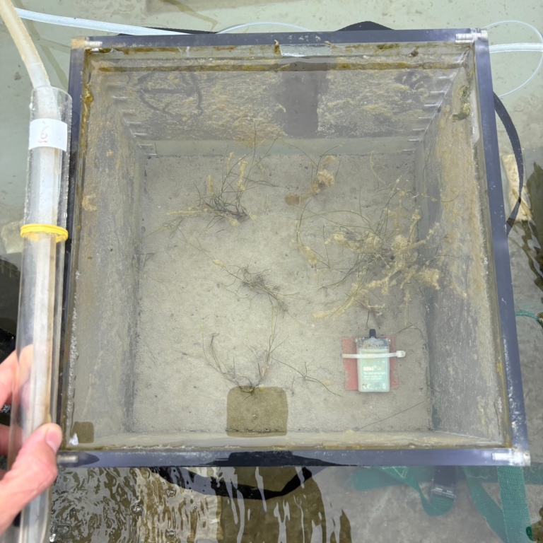 The experiment ran for 21 days, dyring which the fluxes of carbon dioxide (CO₂) and methane (CH₄) were measured on several occasions using a Picarro gas concentration analyser, and water parameters, such as dissolved inorganic carbon, total alkalinity, nutrients and oxygen were also measured.