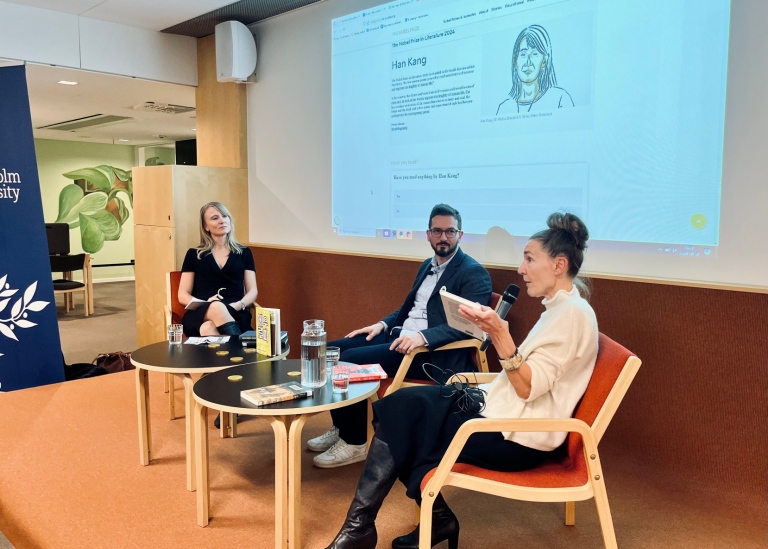 I panelsamtalet deltar även Maria Trejling, forskare i litteraturvetenskap och Bo Ekelund, professor i litteraturvetenskap, båda verksamma på Stockholms universitet.